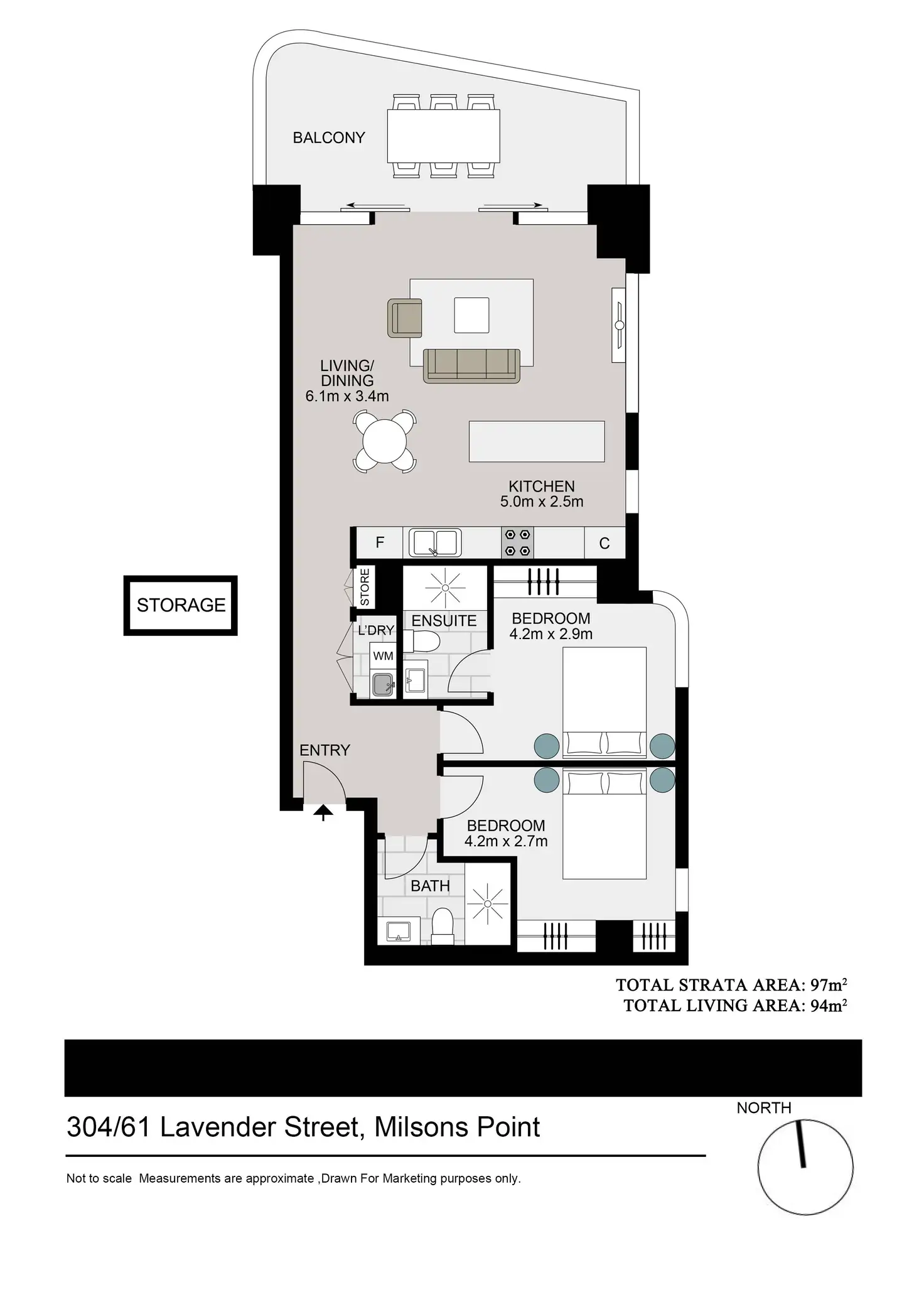 2 Bed • 2 Bath • 0 Car • 97m²