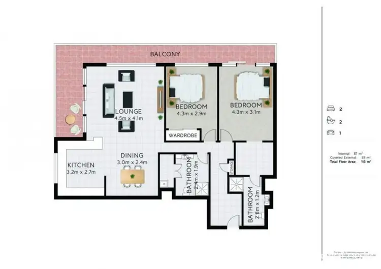 “North East Facing Two Bedroom Apartment - 115sqm Apartment - Prime Location”