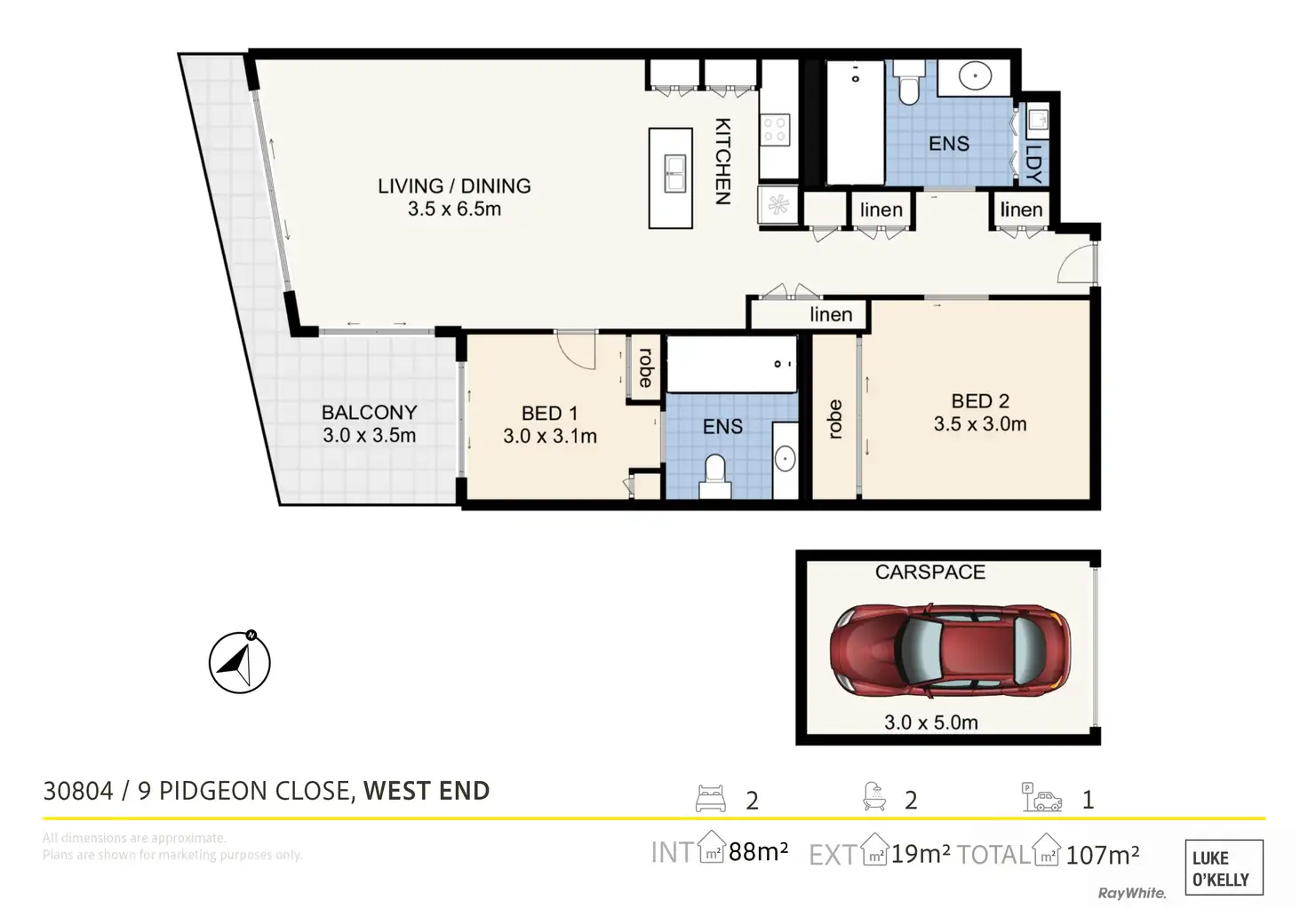 2 Bed • 2 Bath • 1 Car • 90m²