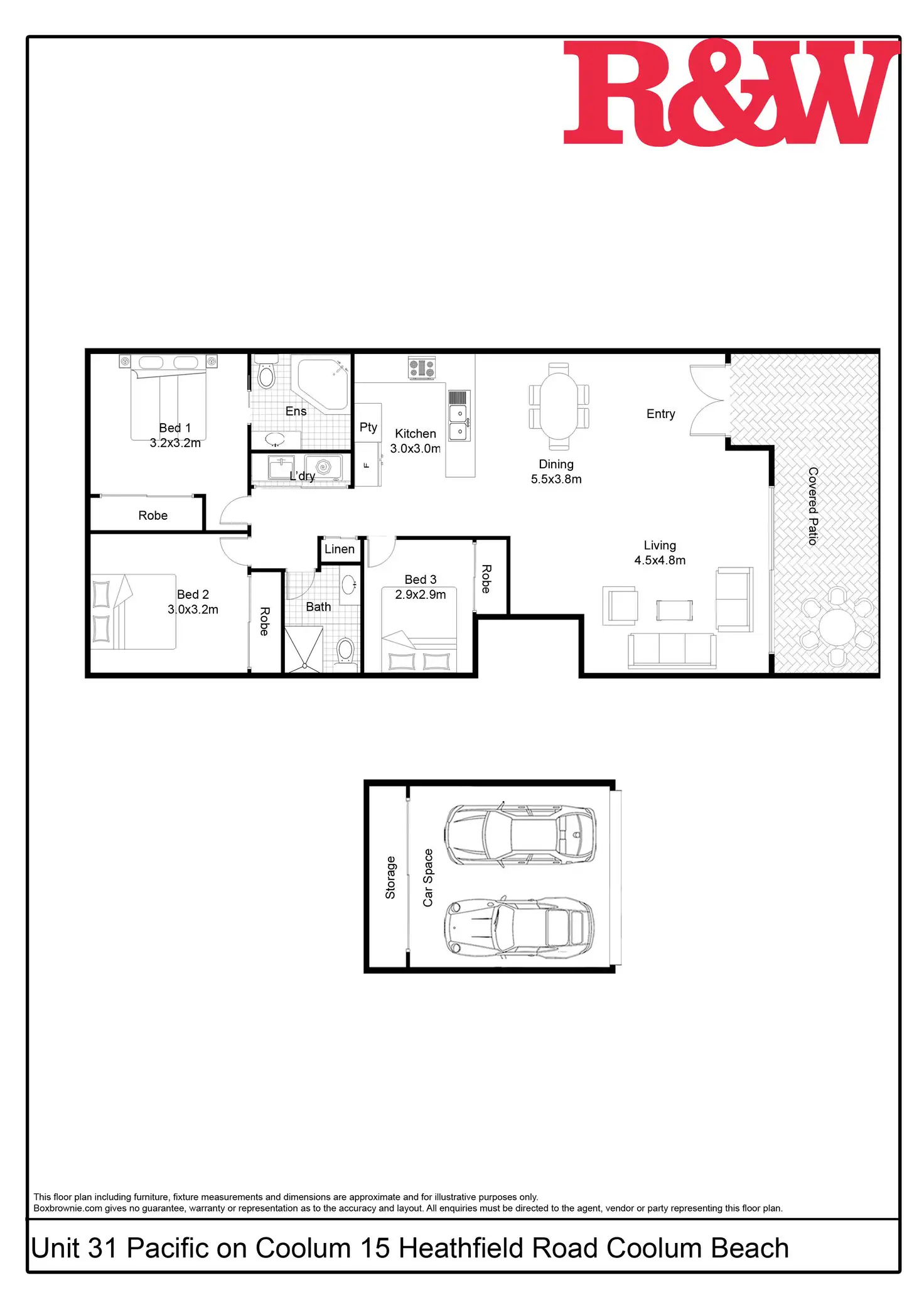 Unit 31 is a house sized apartment featuring 3 bedrooms, 2 bathrooms and 2 side by side secure car spaces.
