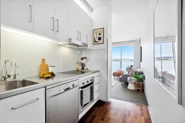 Set on the third floor, enjoy enviable views of the Adelaide Hills and Parklands, as well as acoustic rated and double brick flooring and walls for everyday comfort and privacy. Enter the apartment onto the floating timber floors. Ahead, a modern galley kitchen provides everything you need when you're not exploring CBD dining hotspots, with a sleek stainless steel benchtop, dishwasher, oven and water filter tap.