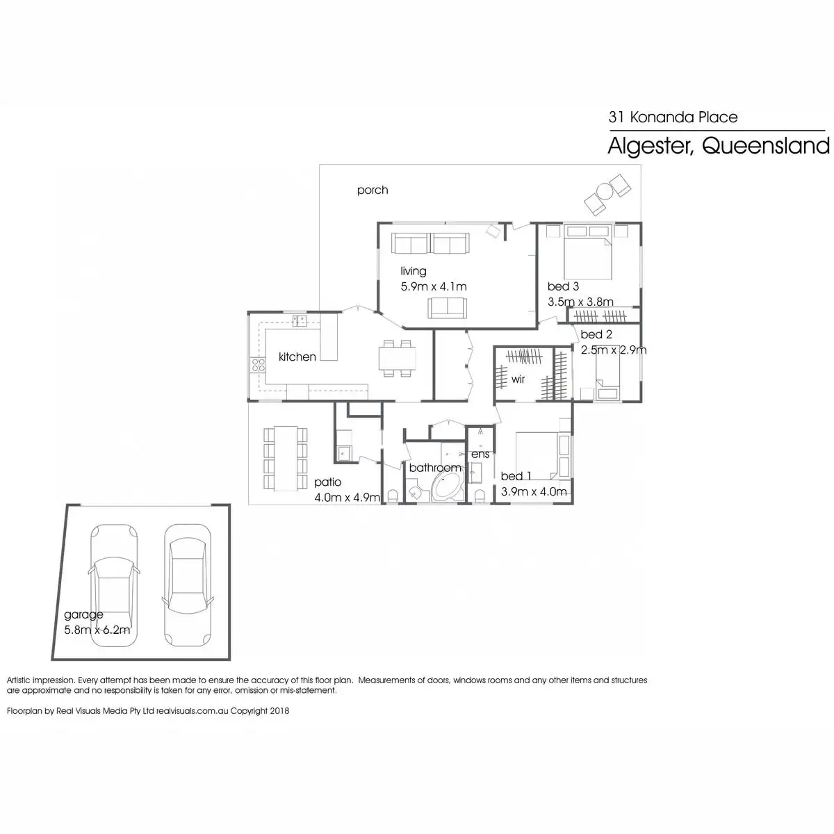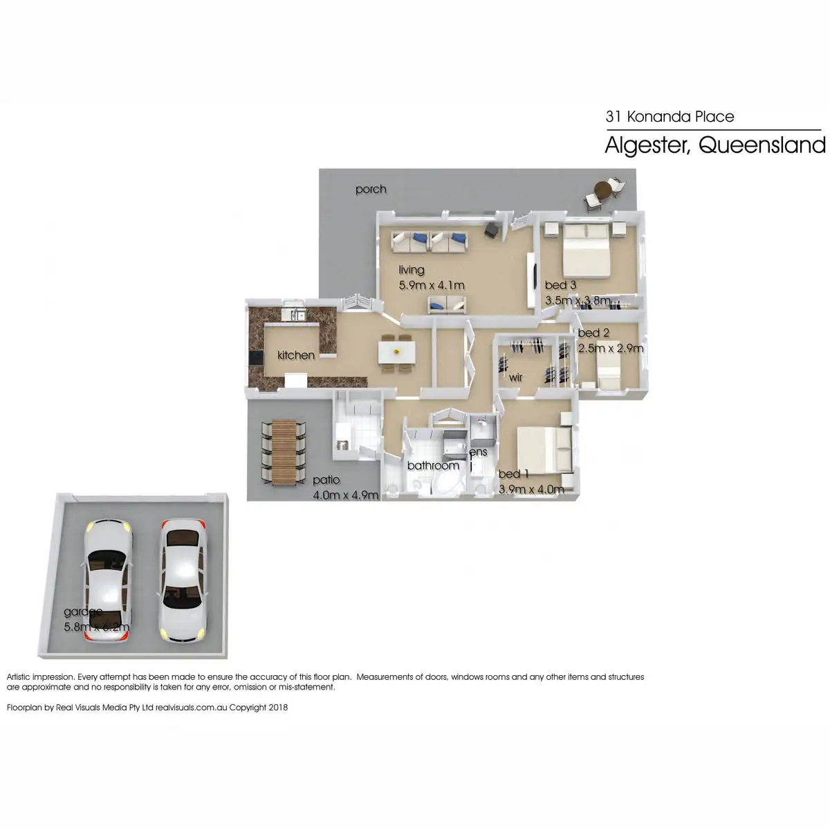 3 Bed • 2 Bath • 2 Car • 605m²