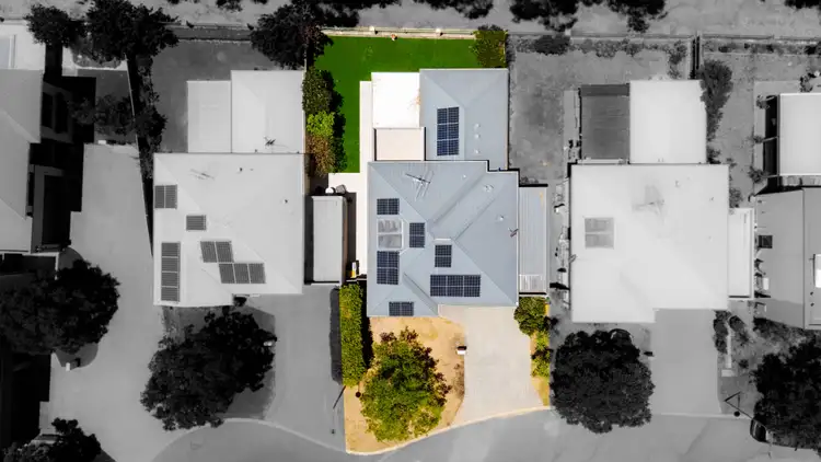 Glass sliding doors open to a north-easterly paved courtyard, complemented by an artificial grassed backyard and low-maintenance garden beds. A wide side gate allows easy access from front to back.