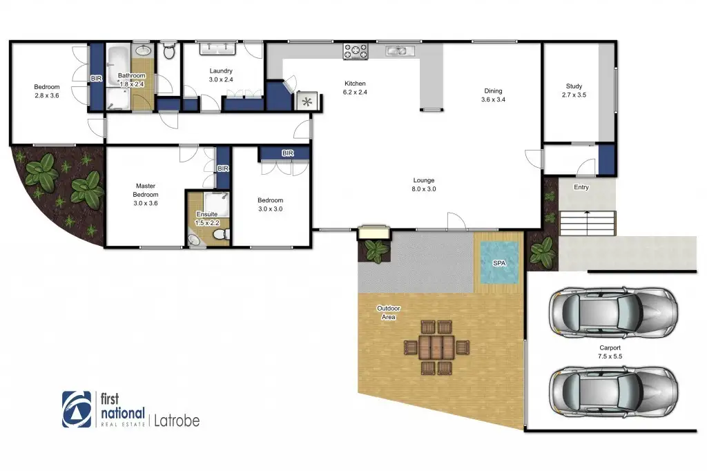 3 Bed • 2 Bath • 2 Car • 845m²