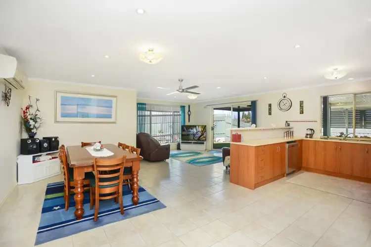 - Open plan kitchen, living, dining with Bluff views, easy care tiled flooring, split system air conditioning and fan opening out to the entertaining area