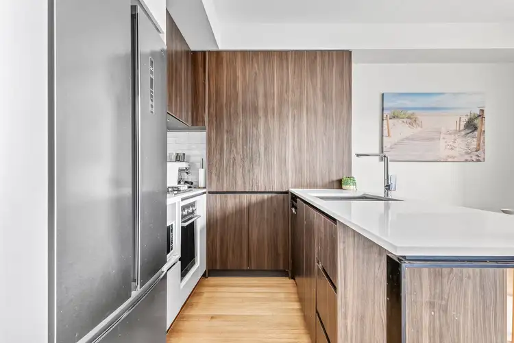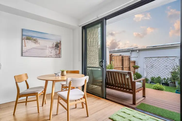 Moments from the sand and surf, this light-filled two bedroom townhouse captures the laid back spirit of Torquay’s “Surfers Paradise.” Designed for effortless coastal living, it offers a breezy open plan layout to the lower level, flowing across hybrid timber floors to a private alfresco deck and sunny back yard, perfect for morning yoga, summer barbecues or relaxed afternoon aperitifs. The coastal inspired interior exudes calm with soft natural tones and plenty of sunlight filtering throughout. Both bedrooms enjoy their own ensuite bathrooms and built-in robes, complemented by a convenient powder room downstairs. A single lock-up garage with private lane access adds everyday ease. Stroll or cycle to the nearby playground, skatepark, sports fields and schools, or wander down to the weekend farmers market and The Dunes Village shops just minutes away. With public transport close by, it’s the ideal address for downsizers, professionals and first home buyers seeking independence, yet still close to home.