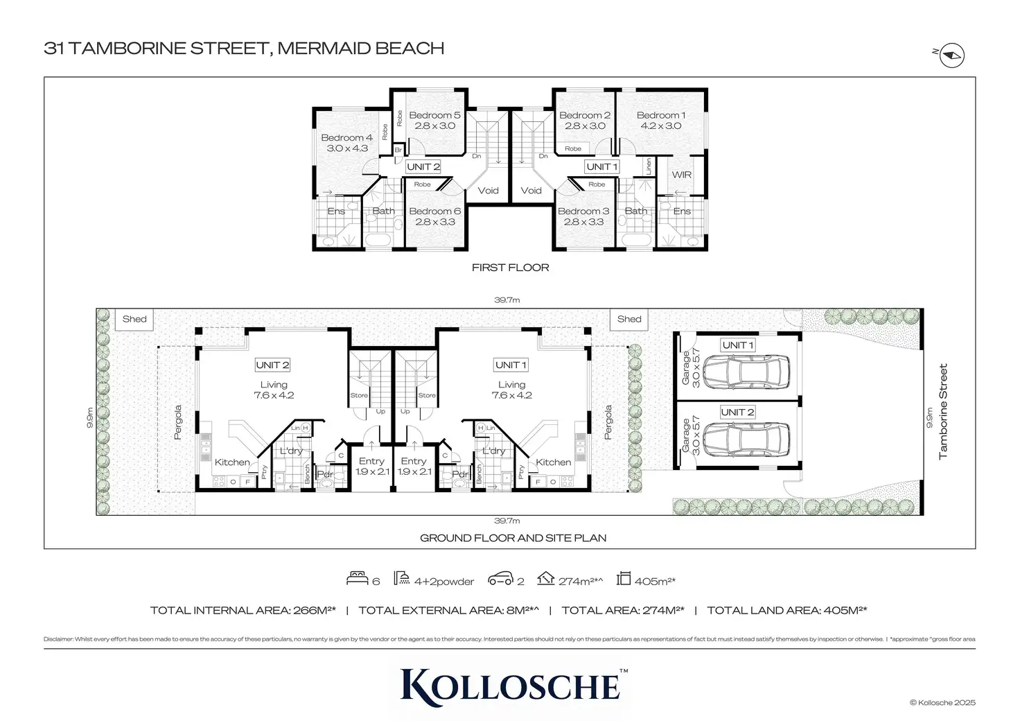 - Three bedrooms and two bathrooms per unit grace the top floor, each with built-in robes and one with an ensuite
