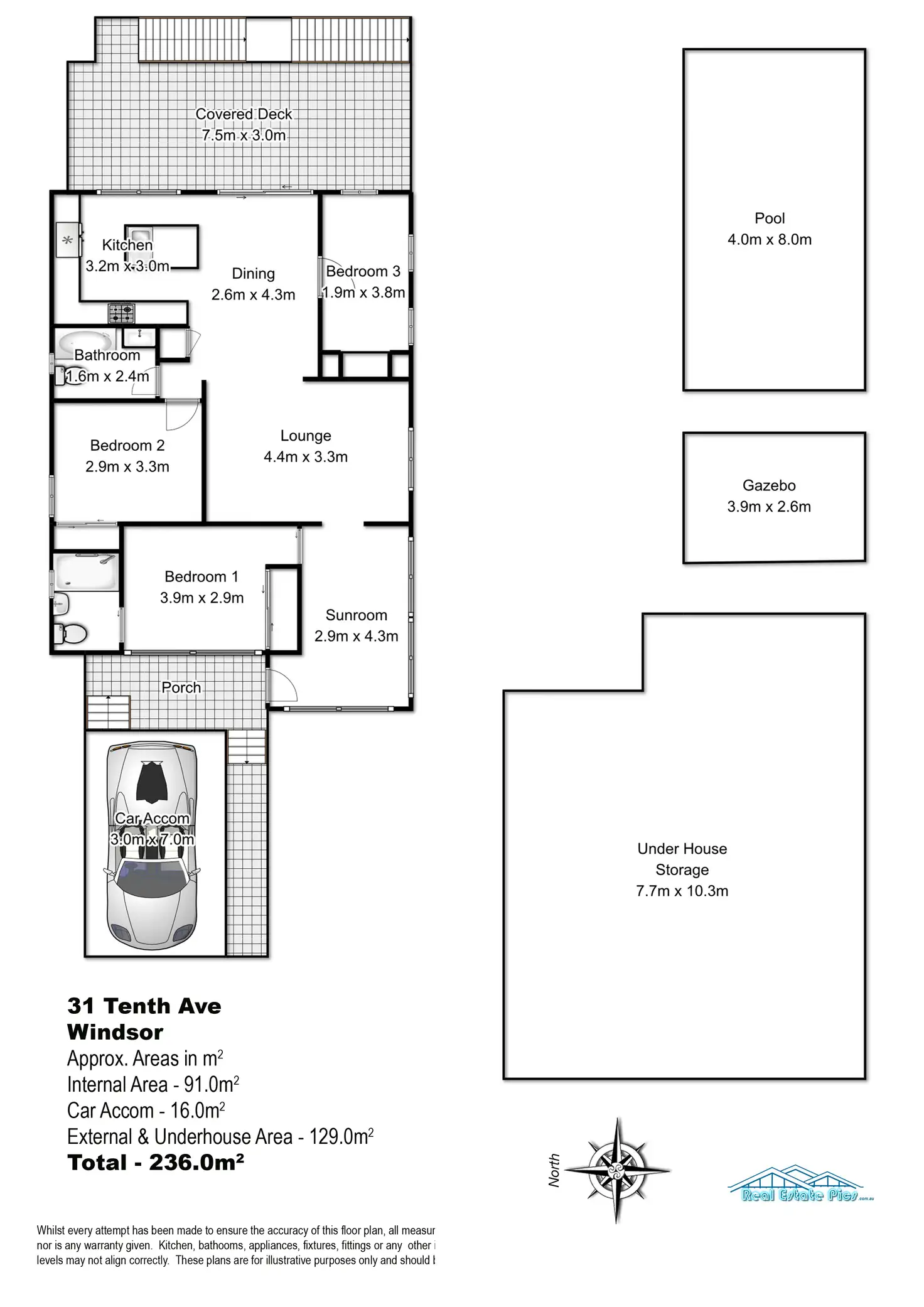 * Three bedrooms, all with built-in robes