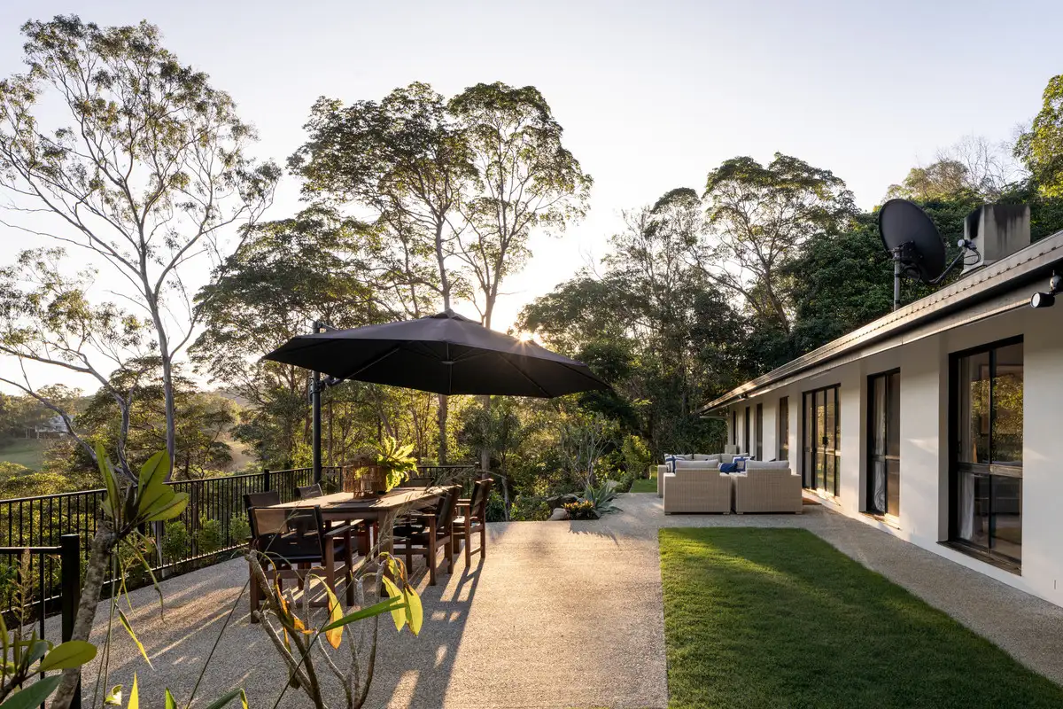 The wide outdoor entertainment area makes the most of the incredible elevation. Suspended high above the tree-tops, here you can entertain on any scale. Whether it is large raucous gathering, or a more intimate dinner party under the stars, or even just peaceful and private moments with your loved one, you will be uninhibited by any visible neighbours. From this ridge top entertaining area, you and your family and friends will be able to take in spectacular sunsets, lovely breezes, and beautiful wildlife. (Including white deer, wallabies, and abundant bird life).