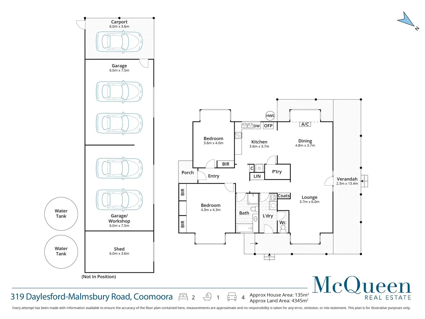 2 Bed • 1 Bath • 4 Car • 4345m²