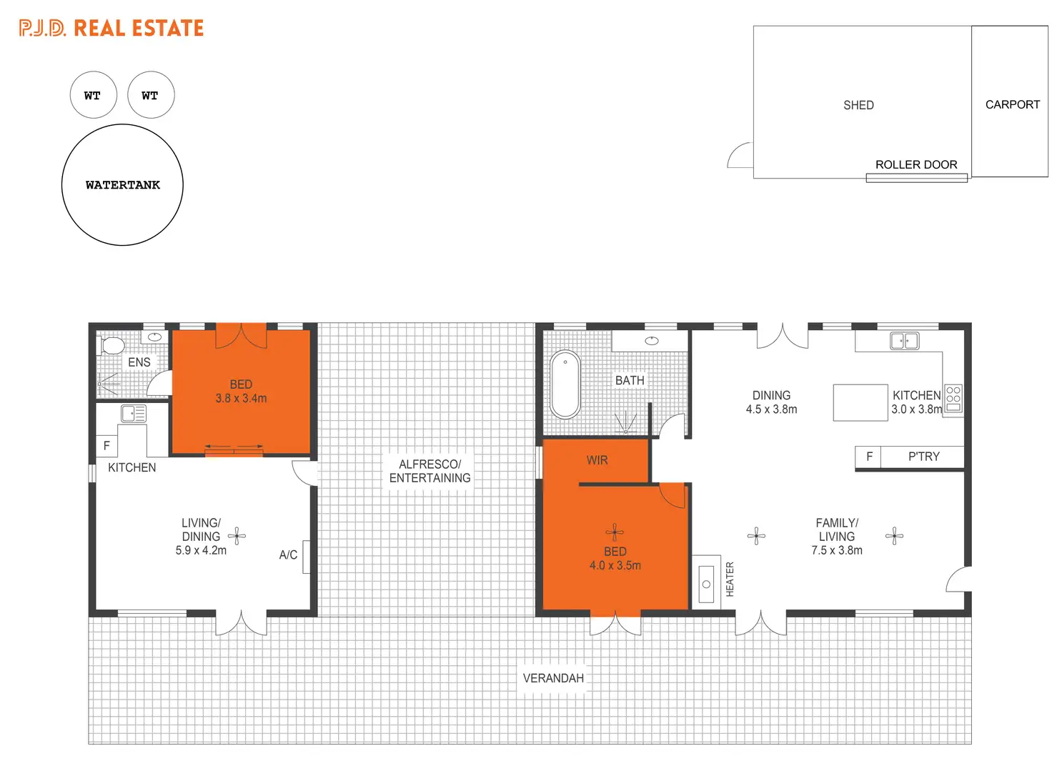 Linked in the middle by a generous alfresco area & all under the main roof. This is a perfect space from which you can enjoy your surroundings. Alternatively, a major flying start if wish to extend & increase your accommodation. Both homes are joined by one long & wide full-length verandah.