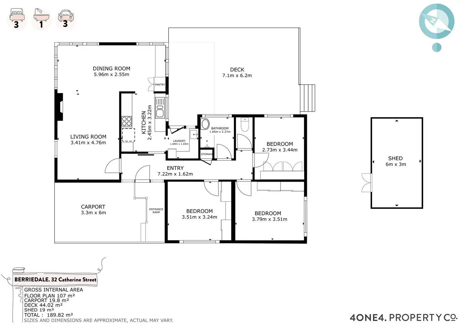 3 Bed • 1 Bath • 4 Car • 599m²