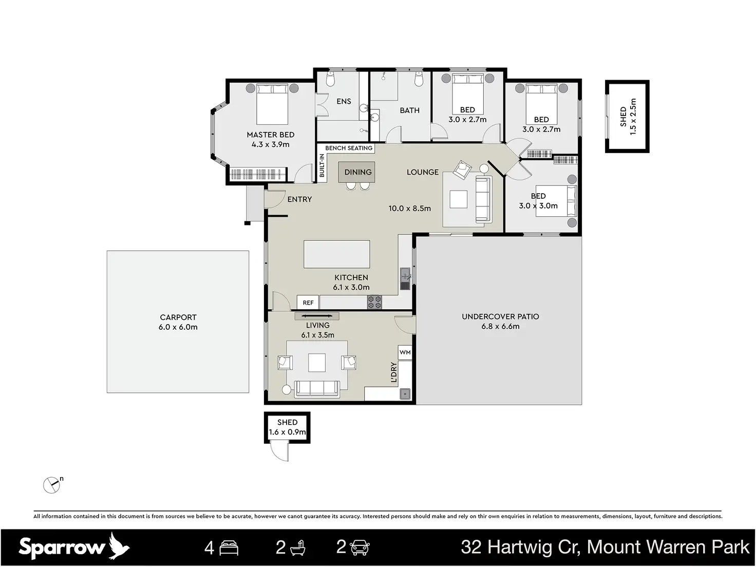 4 Bed • 2 Bath • 2 Car • 600m²