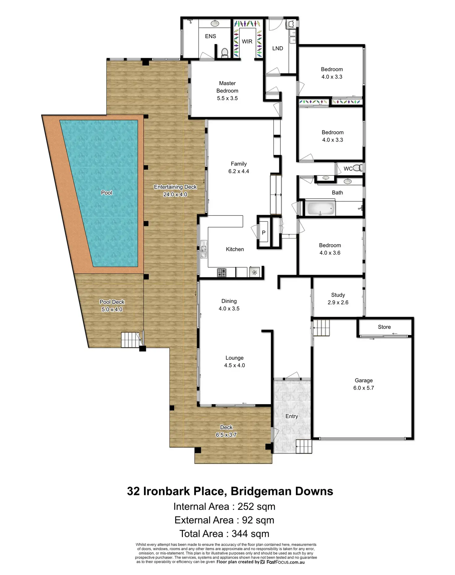 Set across one level, there is ample space between the major living spaces at the front of the home, to the bedrooms at the rear. The Kitchen and Family room form the heart of the home, making it easy to move between formal and informal setting, or from the pool to the deck.