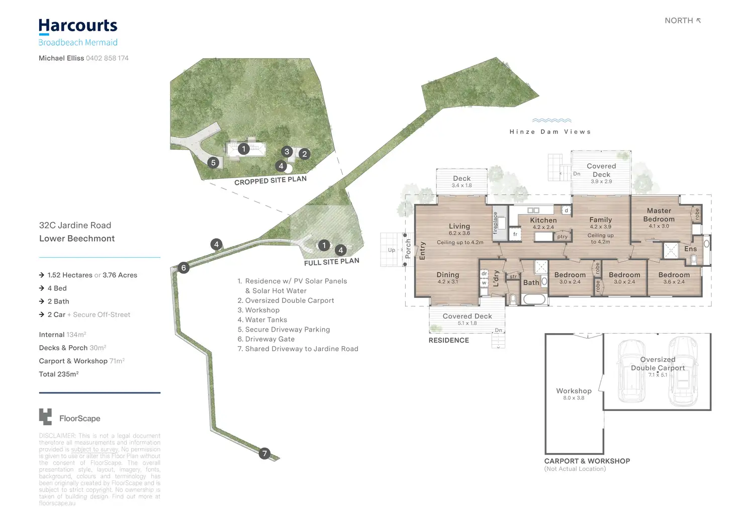 • Approx. 164sqm internal floor area plus 71sqm carport/workshop, offering 235sqm of total undercover space