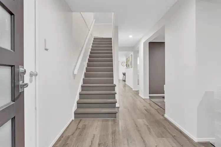 The functional layout hosts four carpeted bedrooms, four living areas, two modern bathrooms, a guest powder room, and a laundry. The master presents a lovely retreat, a large walk-in robe and a stunning ensuite featuring dual vanities and a luxe bath. Overlooking from master bedroom into the new Silver Jubilee Park which is over 14 Ha of amazing recreational space with sporting fields including cricket oval, basketball courts, adventure playground along with shaded picnic & barbeque areas.