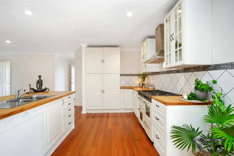 A beautiful country style kitchen, complete with a timber island breakfast bar and glass overhead cupboards, takes pride of place at the heart of the home, while the abundance of cupboard space offers practicality and efficiency. However, it's the beautiful country style commercial oven that will have the Masterchef of the family frothing with excitement.