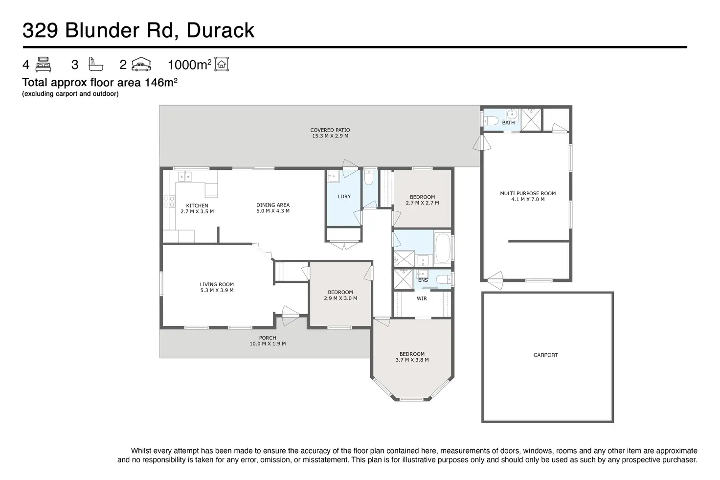 Welcome to 329 Blunder Road, Durack—a spacious and stylish low-set brick home that delivers comfort, versatility, and room to grow. Set on a fully fenced, sprawling 1000m² block, this well-appointed property features 3 bedrooms, 3 bathrooms, 2 car spaces, and a large multi-purpose room, offering the ideal setup for families, entertainers, or those seeking space and flexibility in a convenient location.