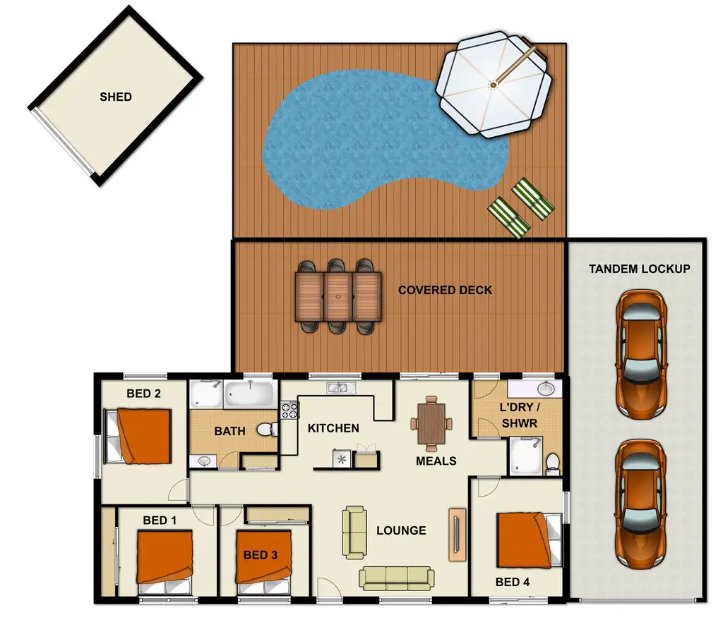 Keep your pool filled and your cars clean all year round with a 5000lt rainwater tank, and your home cool in Summer and warm in Winter with your Solar Panels.