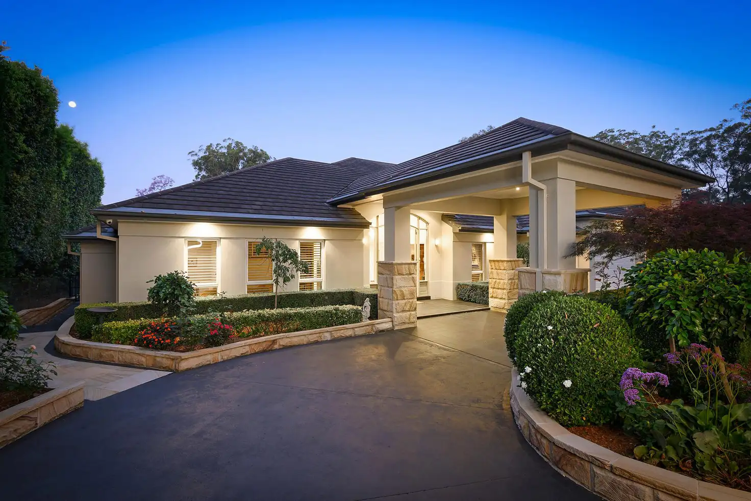 Privately positioned behind a gated entry in one of Dural's most exclusive locations sits this elegantly appointed home situated on just over an acre of beautiful established gardens and lush green lawns.