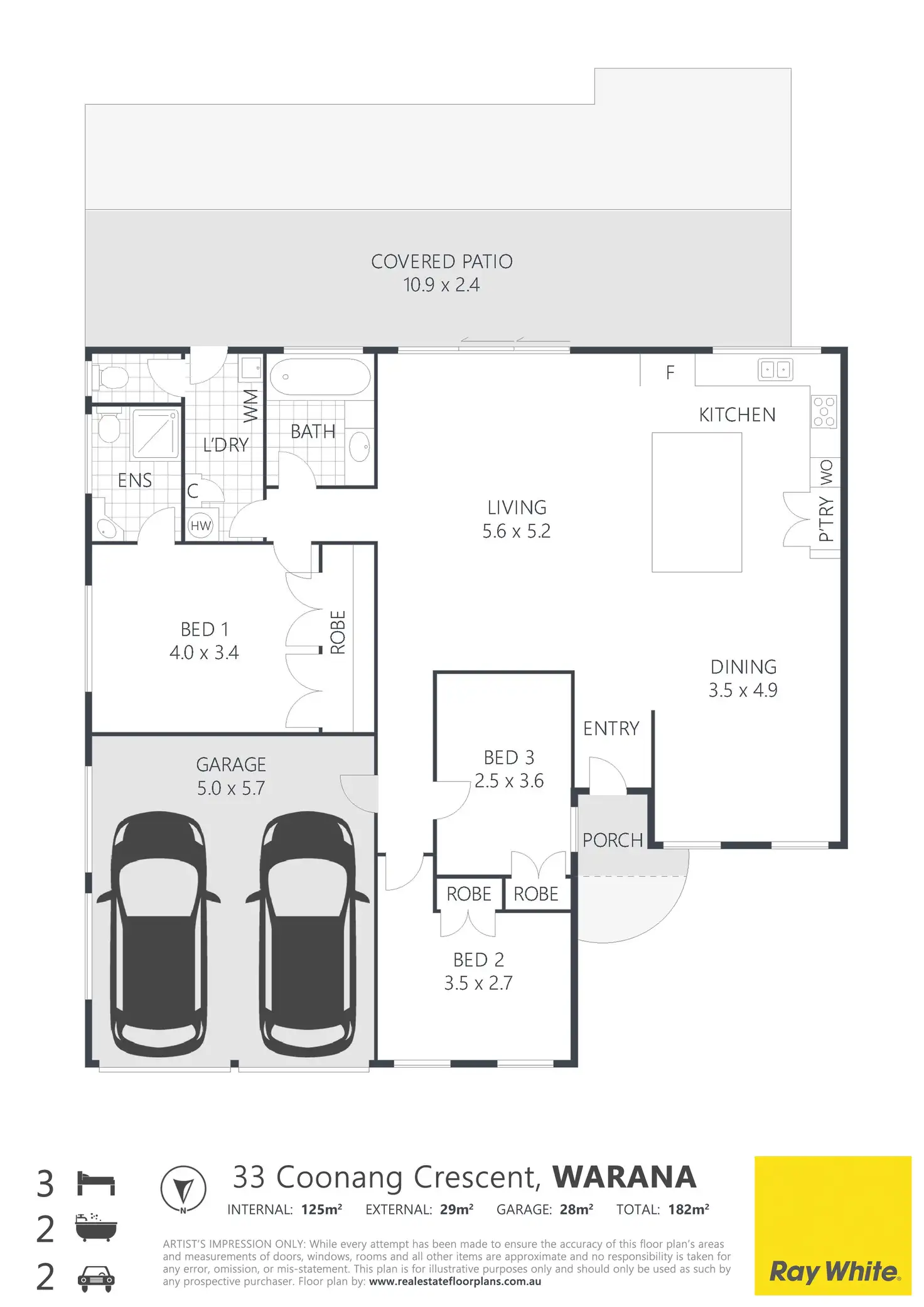 3 Bed • 2 Bath • 2 Car • 567m²