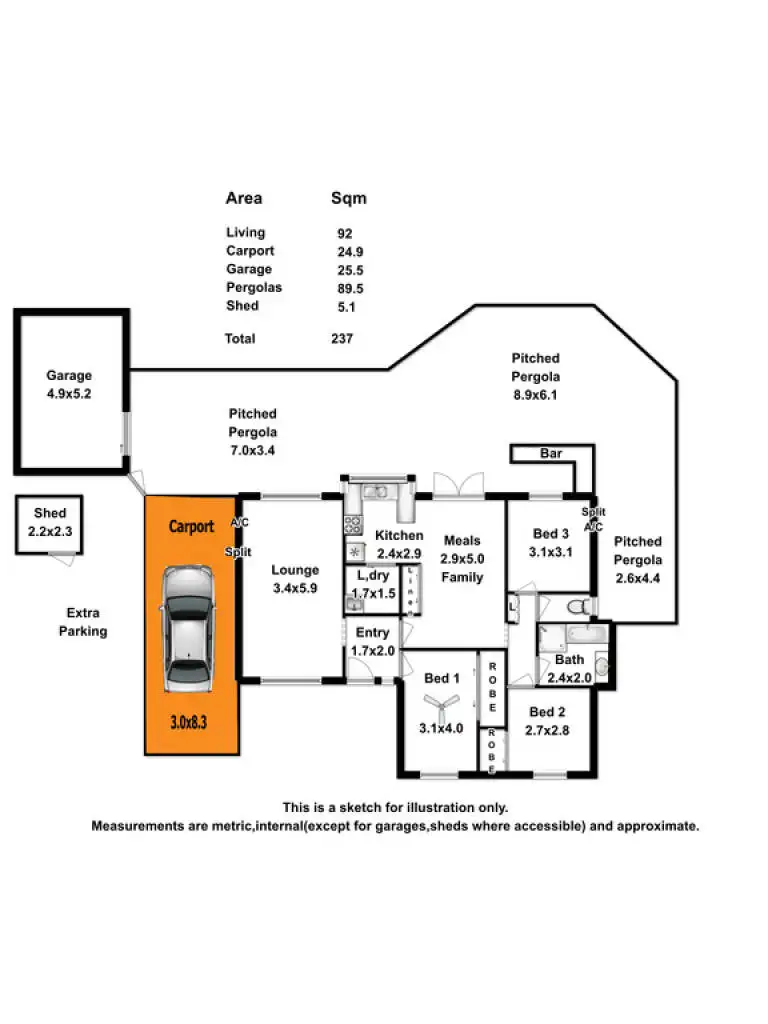 3 Bed • 1 Bath • 2 Car • 706m²