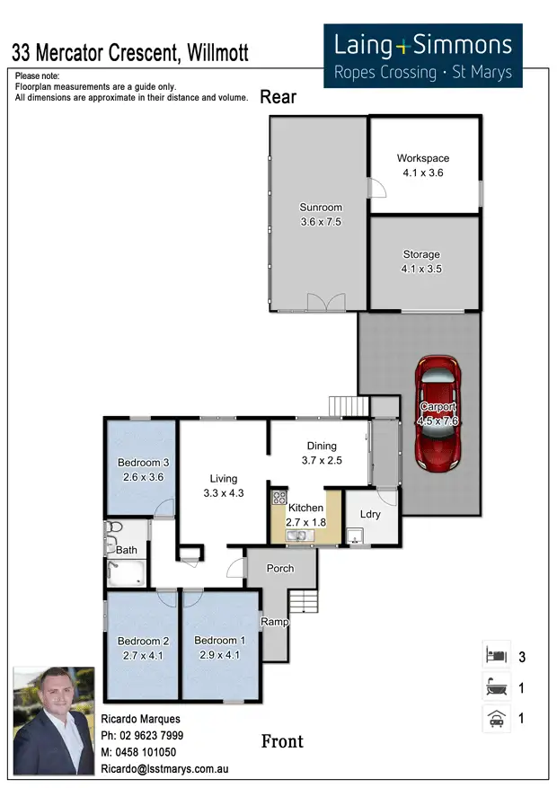 3 Bed • 1 Bath • 2 Car