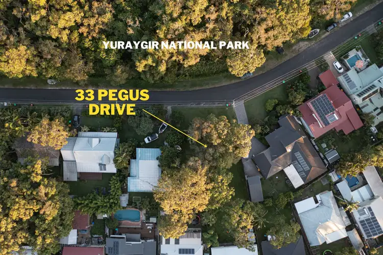 33 Pegus Drive overlooks the Yuraygir National Park on a gently sloping and tree filled block. Just a few hundred metres down the treed street is a path with bananas growing overhead. This walking path takes you down to the lagoon within in a few minutes - where you can dolphin watch, launch a boat, swim, fish, or sail.
