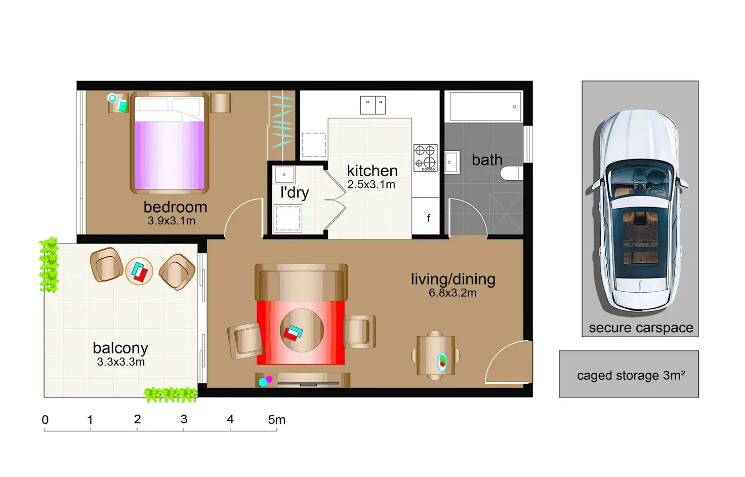 1 Bed • 1 Bath • 1 Car