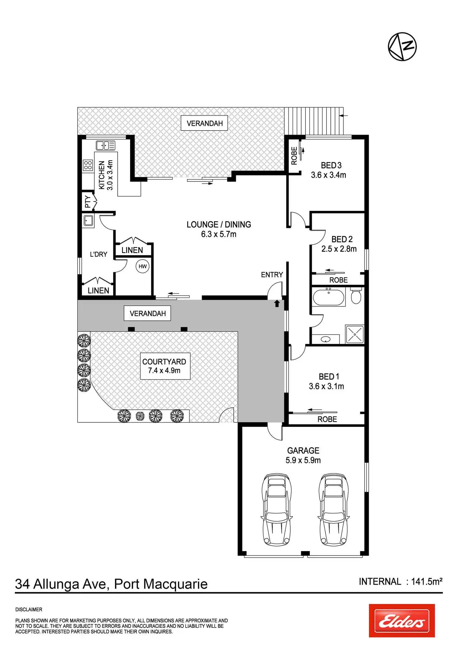 3 Bed • 1 Bath • 2 Car • 677m²
