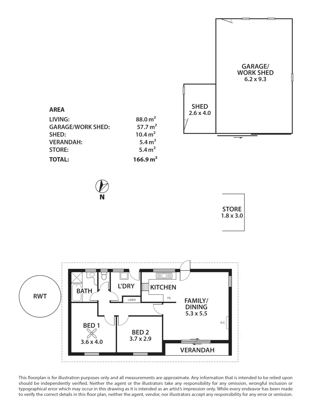 2 Bed • 1 Bath • 2 Car • 1796m²