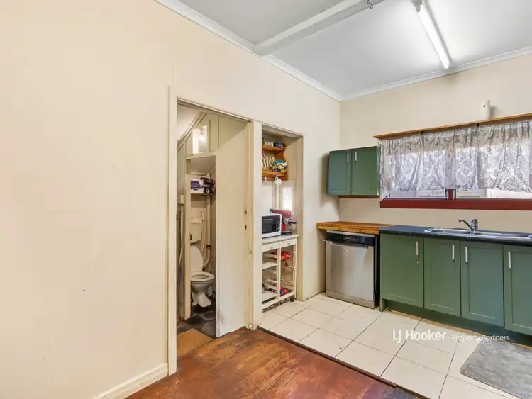 Stepping inside, you'll find a spacious interior ready for your personal touch. The distressed timber floors are a blank canvas, just waiting for a glossy new polish to bring them back to life. The large, combined lounge and dining area serves as the heart of the home, ideal for family gatherings, meals, and comfy nights in.