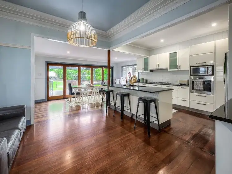 Upon entering, you are welcomed with original polished timber floorboards, ornate cornices and VJ walls. Navigating through the spacious living and dining areas, you'll be captivated by the updated kitchen. It boasts an inviting island bench, gas cooking, high-quality stainless steel appliances, and generous storage options.