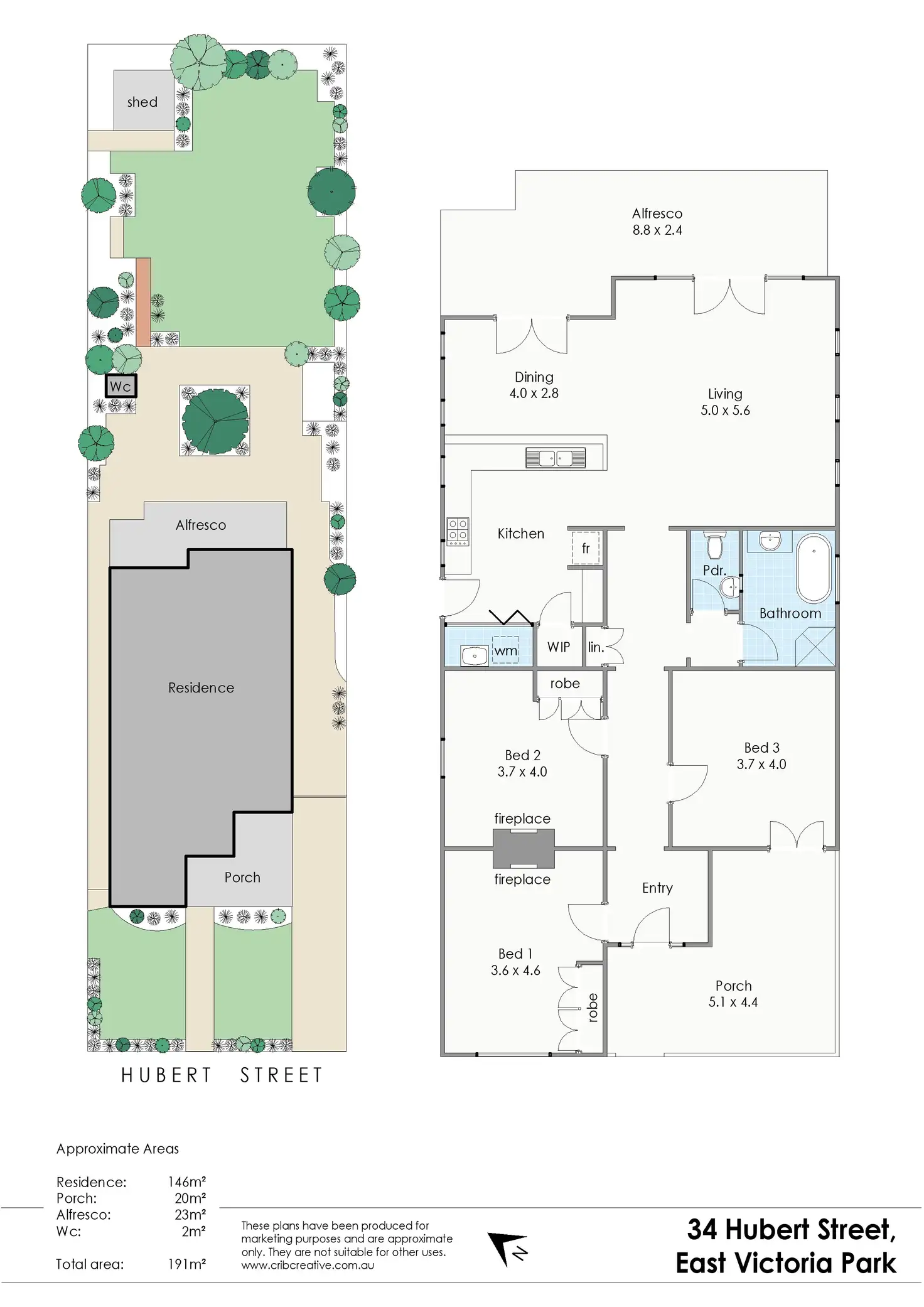 The home boasts beautiful fireplaces in two of the generously proportioned bedrooms, both also having built-in robes. The third bedroom has a pair of original timber and glass doors opening to the front verandah.
