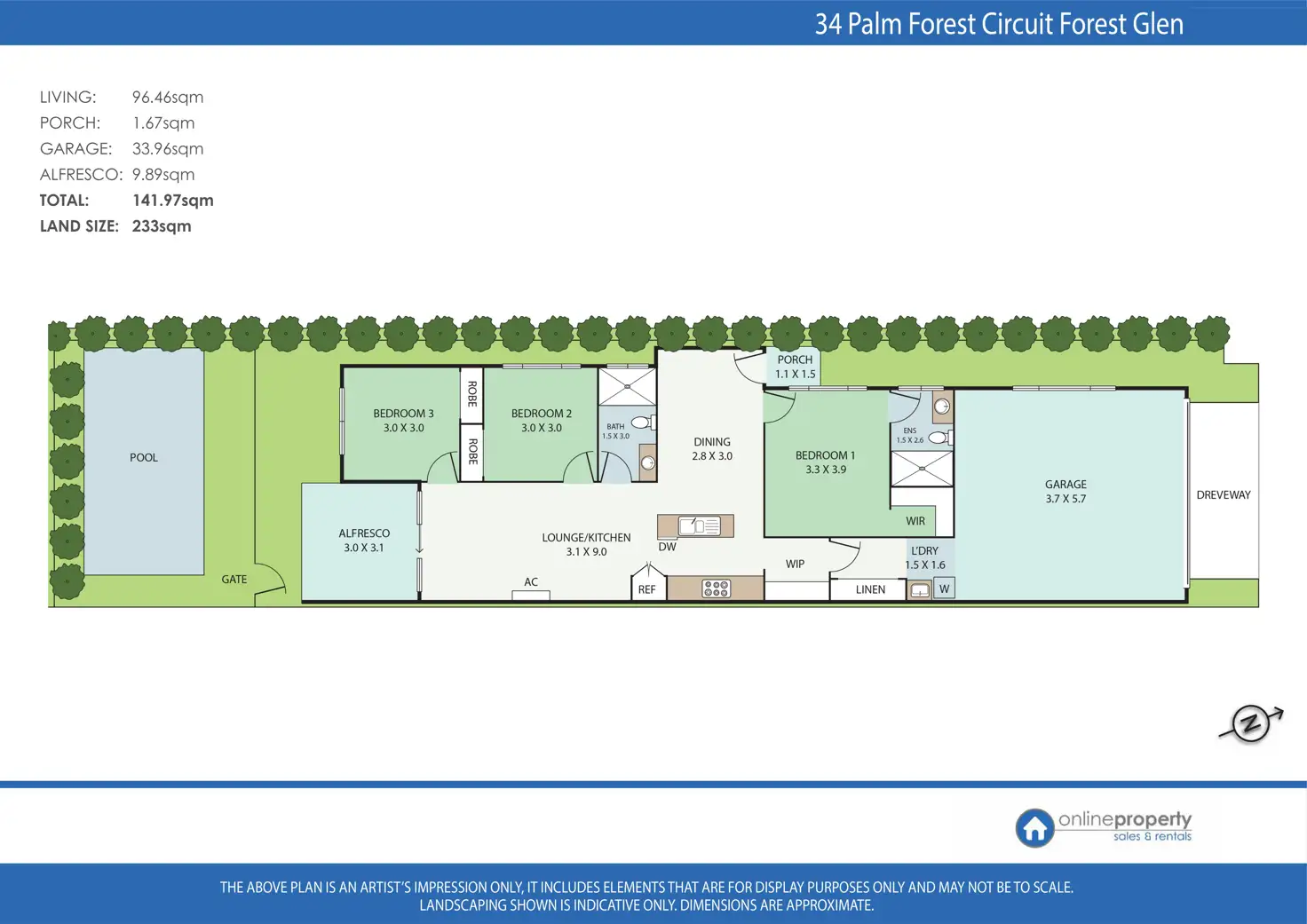 Set on a desirable corner block opposite the park with a serene bush backdrop, this as new stylish single storey home offers three generous sized bedrooms, two bathrooms and a double lock up garage. The contemporary open plan living area integrates seamlessly with the standout feature of the property – the backyard! The undercover tiled entertainment space spills across the lawn to a full size 7m x 3m sparkling in-ground resort style pool. This is lifestyle living at its best and delivers the kind of convenience a modern life demands.