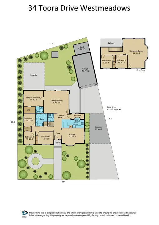6 Bed • 2 Bath • 2 Car • 629m²