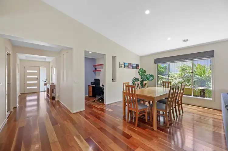 Polished spotted gum flooring is a highlight in the entrance hall and continues through to the central living area.