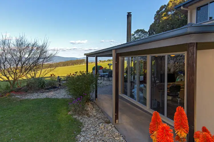 The house site was situated to maximise the views, set away from the forest, enabling an expansive lawned area, dotted with a selection of fruit trees, hen house and vegie garden. Entertaining will be a joy on the east-facing patio area adjacent to the lawn, accessed from the wrap-around veranda which provides shade, and numerous sheltered spots in which to sit and enjoy a morning coffee wherever the sun is.