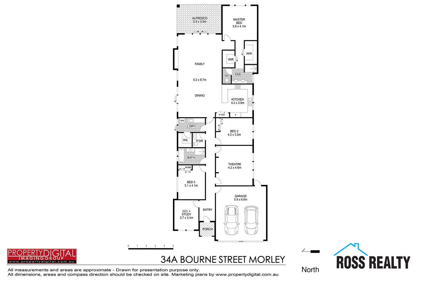 There are two separate over-sized living zone for everyone to enjoy, here. The carpeted theatre room is huge in size and has two entry/exit points, just like a real cinema. A massive open-plan family, dining and kitchen area is also epic in its proportions and is made up of a media recess, a double-door pantry, ample storage options, stylish pendant light fittings, tiled splashbacks, sparkling granite bench tops, double sinks, a stainless-steel dishwasher and quality stainless-steel 900mm-wide range-hood, gas-cooktop and oven appliances.