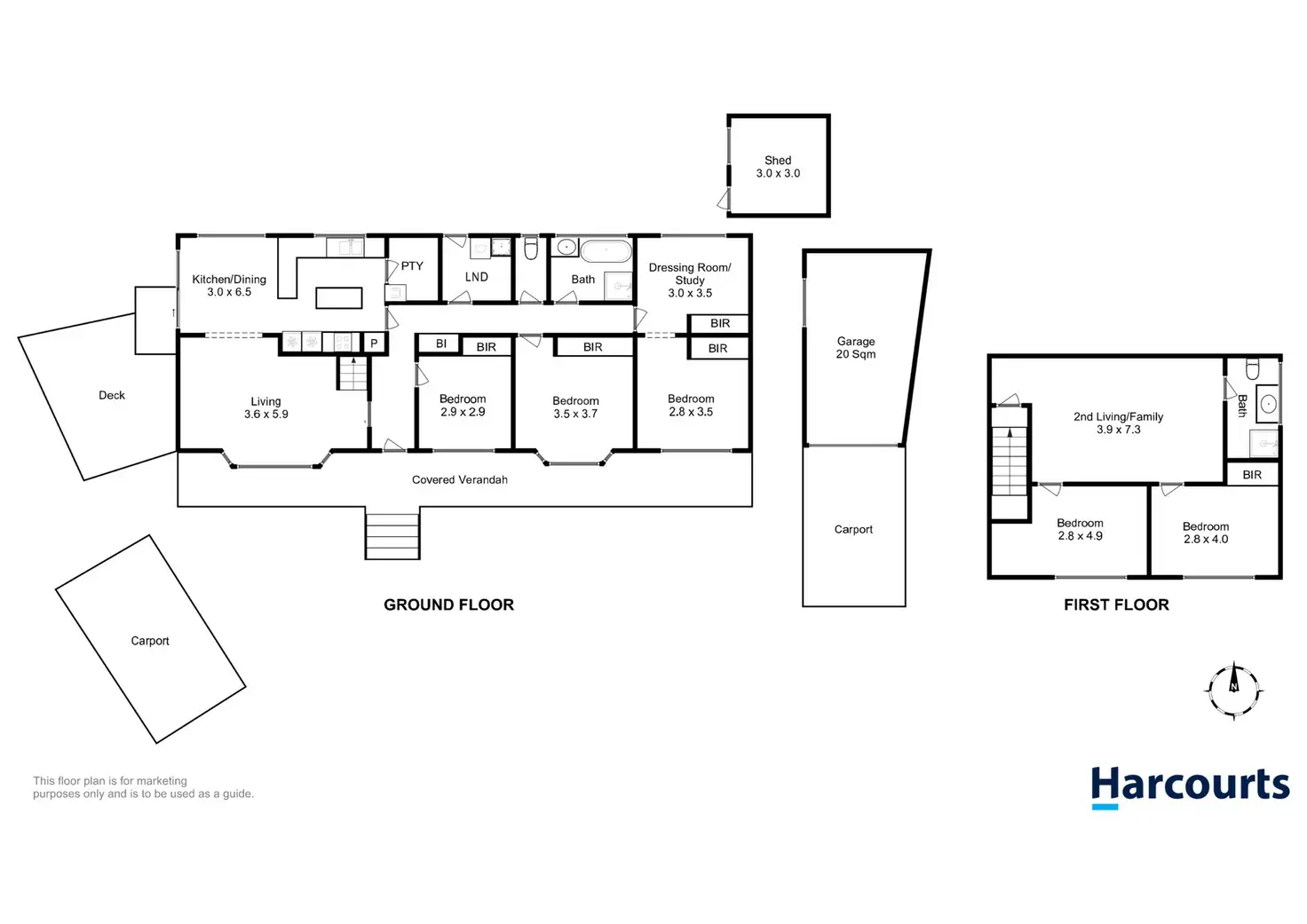 Downstairs accommodation includes three bedrooms, a study or dressing room, bathroom, toilet and laundry with direct access outside. Upstairs leads to a huge second living area/family room with two further bedrooms or studies and its own bathroom.