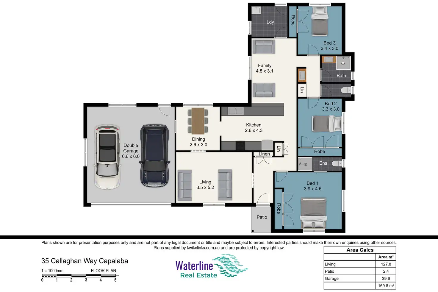 3 Bed • 2 Bath • 2 Car • 700m²