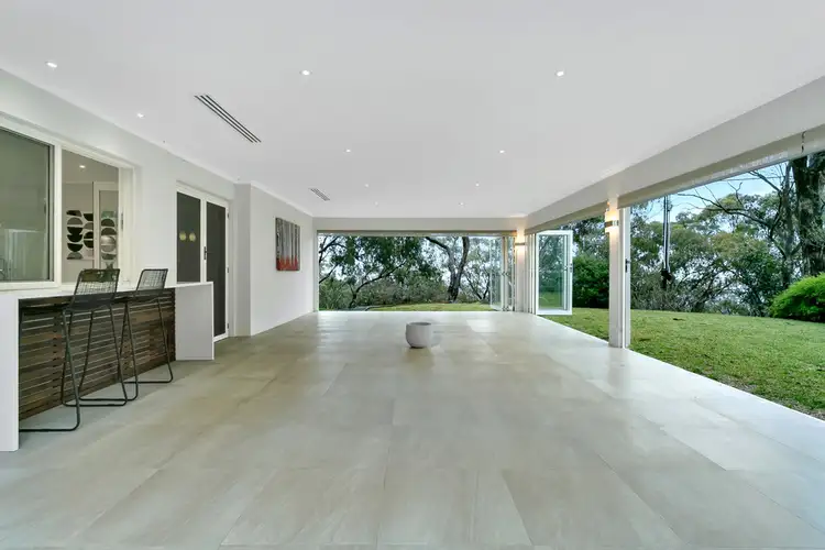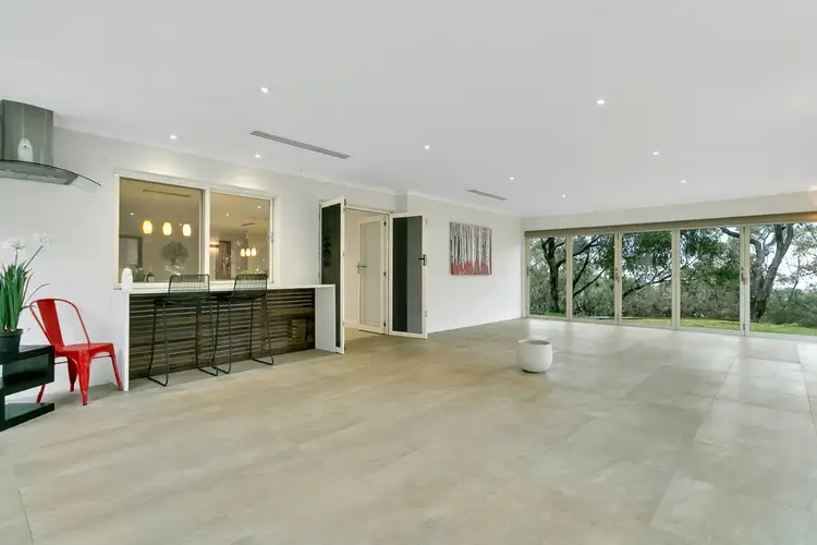 From here, sliding doors from the kitchen open to a servery and French doors bring access to the most amazing space. A real fusion of indoor and outdoor combine here in this unique area. Completely wrapped in bifold doors enabling undercover outdoor entertaining & the ability to close off to the elements provide total control & flexibility. Either way with feature lighting, ducted air conditioning and quality tiling throughout, entertaining on a grand scale is year round and picturesque. Surrounded by nature and extensive landscaping you feel immersed one minute & in a glass bubble the next.