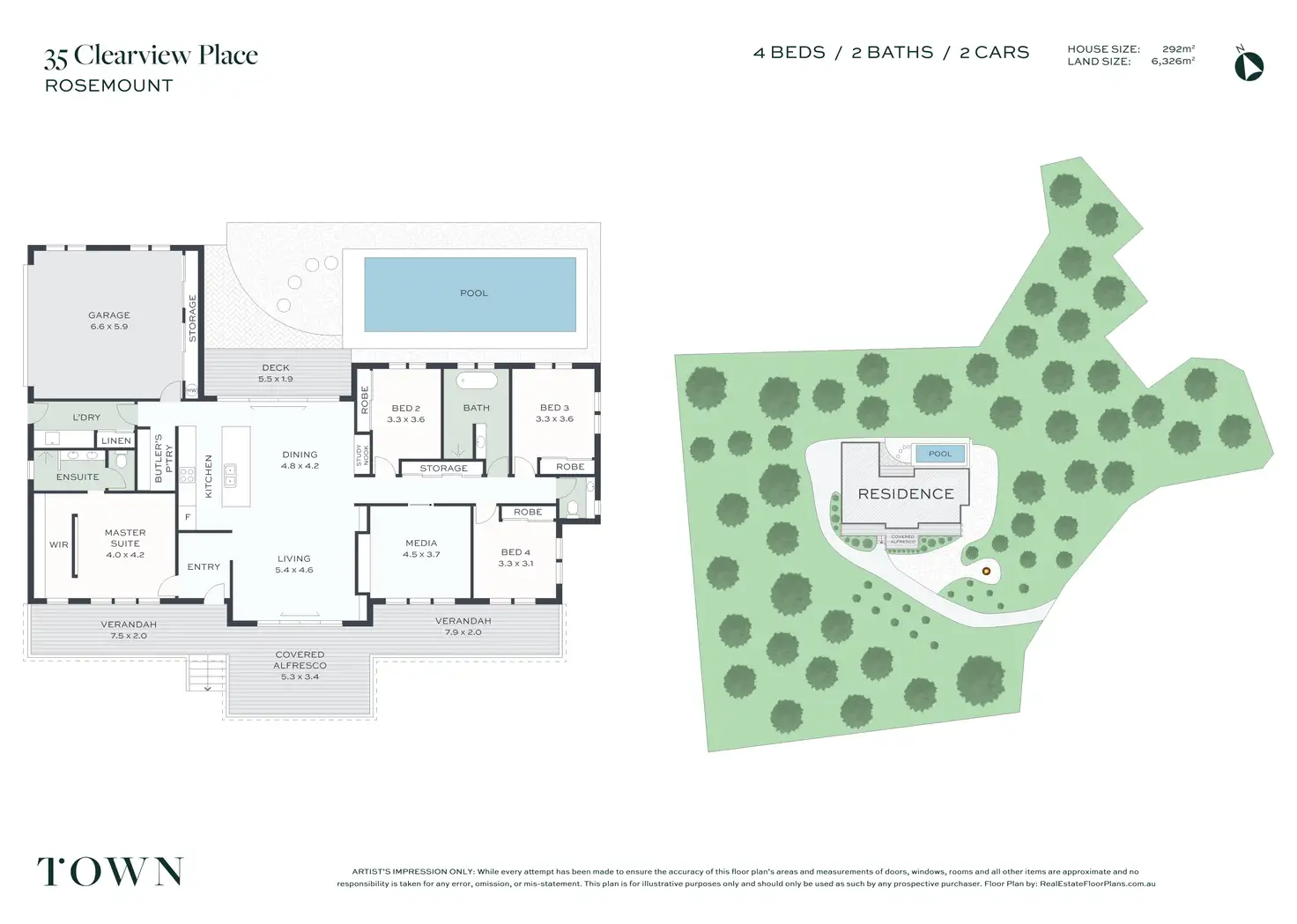 - 4 generous bedrooms, 2 bathrooms plus separate media room