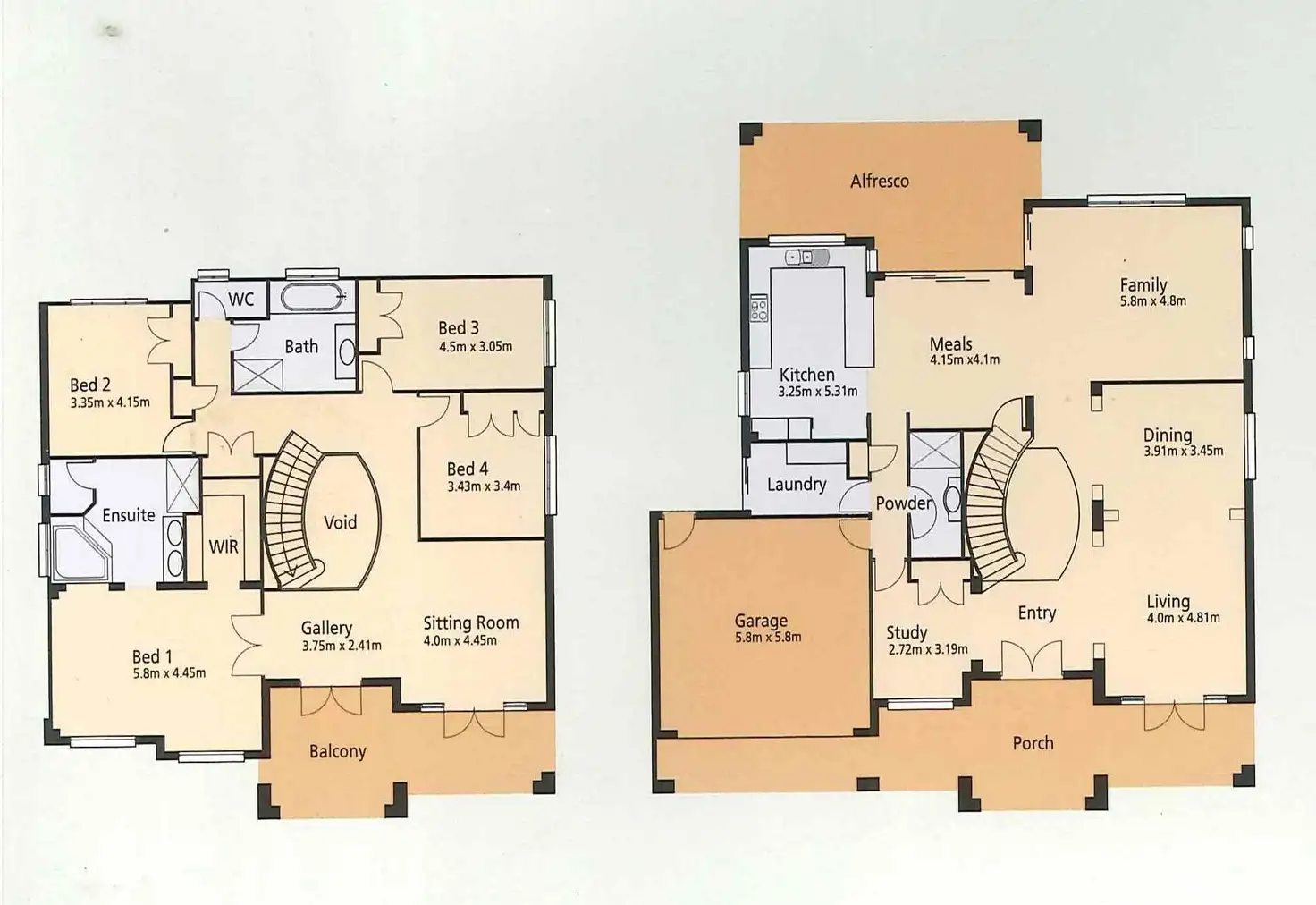 * 4 x Generous Double Bedrooms (upstairs) + Large Study or potential 5th bedroom with built-ins (downstairs).