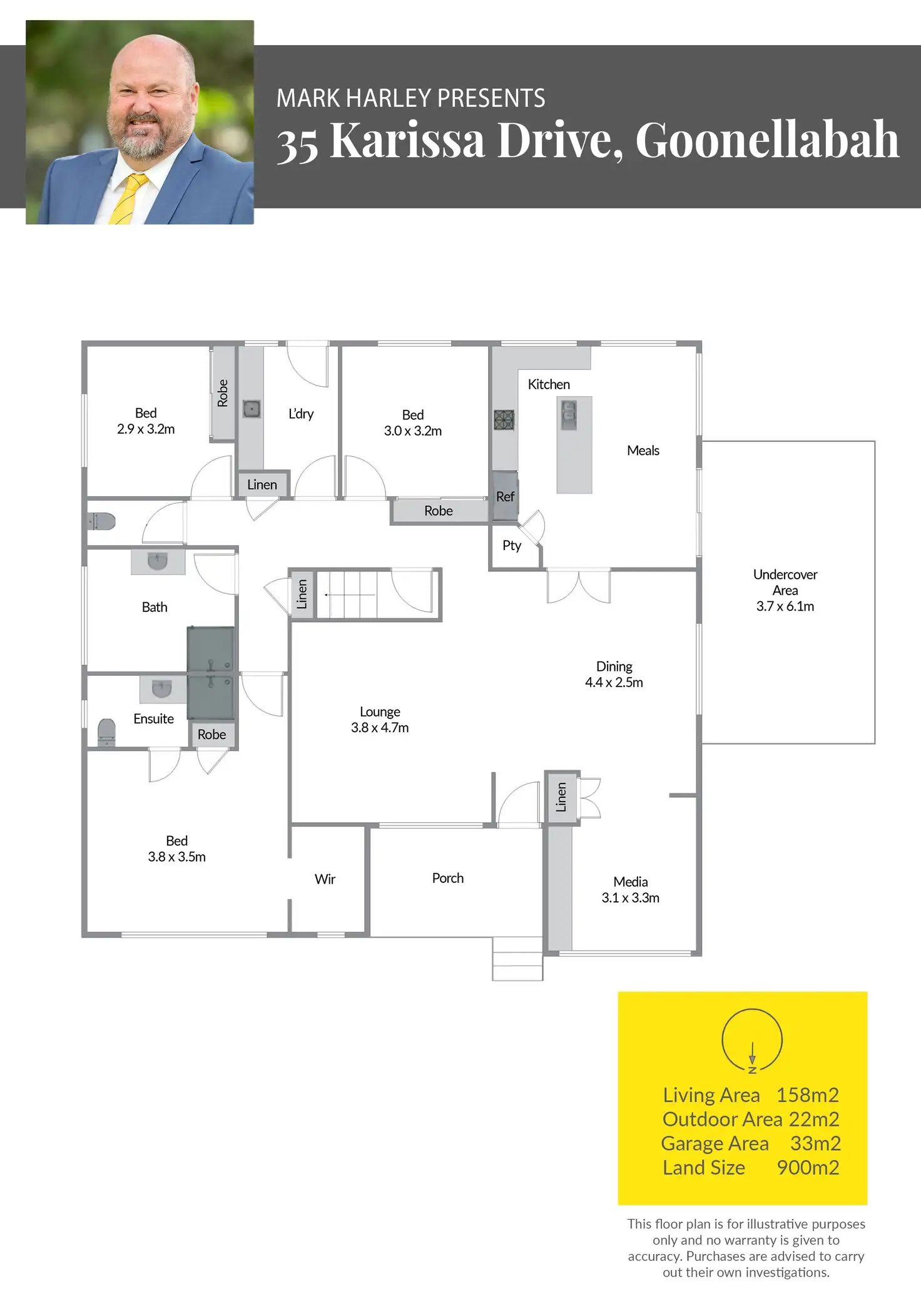 3 Bed • 2 Bath • 2 Car • 900m²