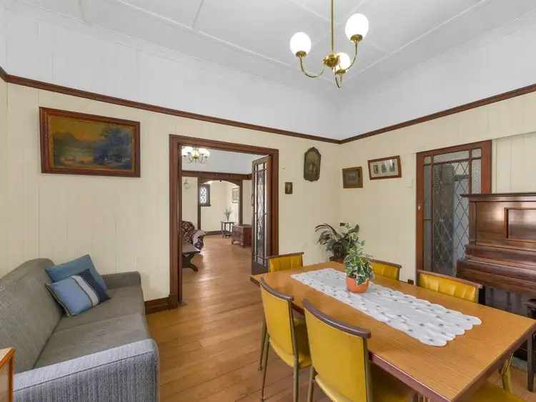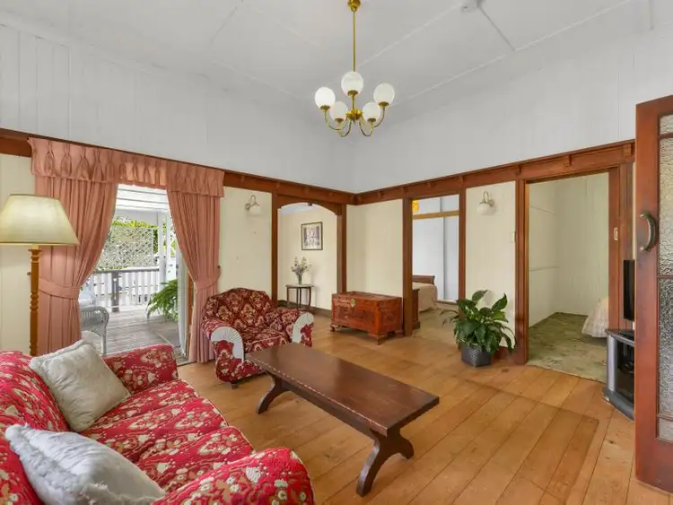 Journey inside via the home's beautiful front door with leadlight window to discover a welcoming living area framed by renowned Queenslander features including, ornate picture rails, rich timber architraves and skirting boards, VJ wallboards, soaring ceilings, and original timber flooring.