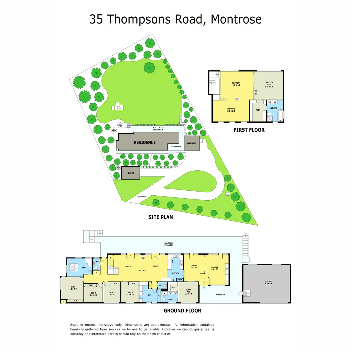 Five ground floor bedrooms with built-in wardrobes, including a guest suite with walk-in wardrobe and ensuite, supply generous accommodation. Accompanied by a chic floor-to-ceiling tiled bathroom, dual powder rooms plus a storage-lavished laundry.