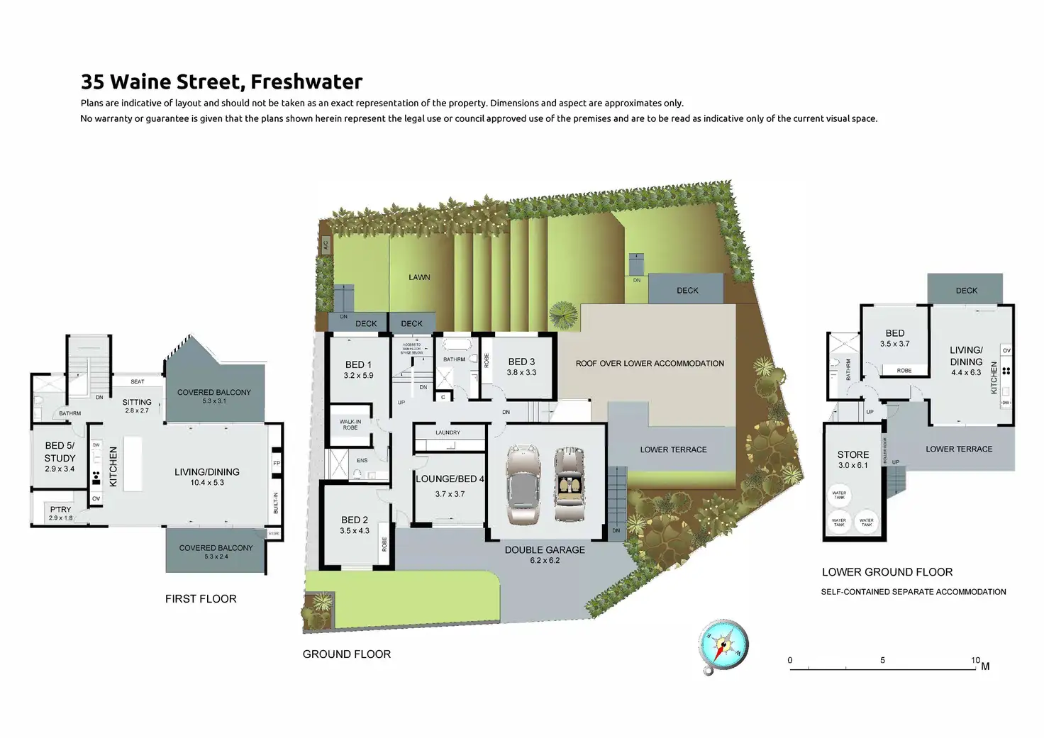 - Double lock-up garage with auto door and internal access, plus external secure storage room with water tanks and additional car space.