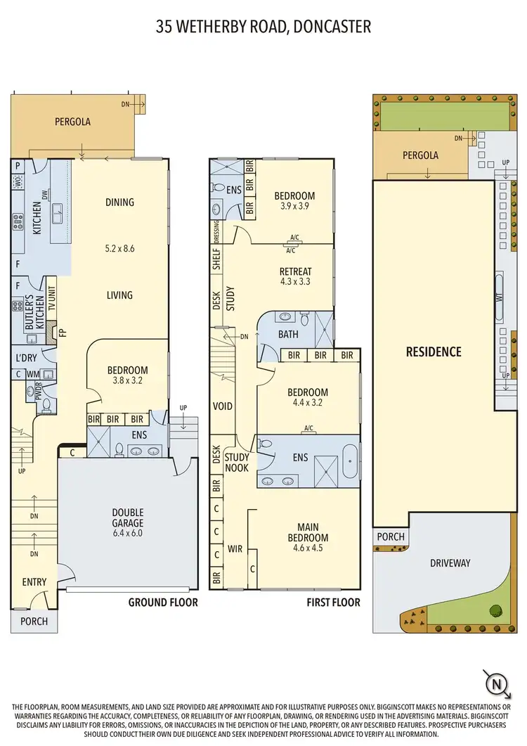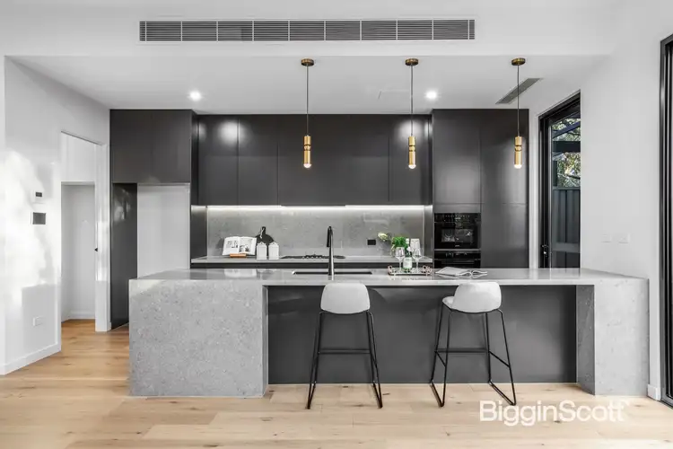 Pairing modern fashion with family functionality, this brand new residence delivers distinction across its design with curved hallway detailing, premium appointments and plenty of natural light filling every space. Highlighted with stylish floorboards, the open plan living, dining and kitchen encourages you to relax before the warming glow of an electric fireplace or cook up a storm in the kitchen boasting waterfall premium stone benches, Miele appliances (oven, gas stove, microwave and semi-integrated dishwasher), a breakfast bench plus a butler’s kitchen with Bosch gas stove. Stacker sliding doors create a fabulous indoor-outdoor ambience, connecting the open plan domain with a generous entertainer’s deck and landscaped yard. Upstairs, a carpeted retreat provides a second living area accompanied by a fitted study with desk and shelving, while the four robed bedrooms are each serviced by their own bathroom and include a ground floor guest bedroom with built-in-robe and ensuite, supplemented by a powder room and laundry. The three upstairs bedrooms are smartly designed to incorporate a 2nd bedroom with built-in-robe and ensuite effect 2-way bathroom, 3rd bedroom with built-in-robe and ensuite plus the master suite with dressing room, built-in desk and opulent twin vanity ensuite with freestanding tub and walk-in shower. Quality equipped with reverse cycle heating/air conditioning, keyless entry, video intercom, double glazed windows, floor-to-ceiling tiles, touch screen mirrors and in-wall toilet cisterns in bathrooms, high ceilings plus a double garage with internal access. Impressively poised near Jackson Court shops, Doncaster Gardens Primary, Doncaster Secondary, Westfield Doncaster, Ruffey Lake Park, Koonung Creek Trail, buses and the Eastern Freeway.
