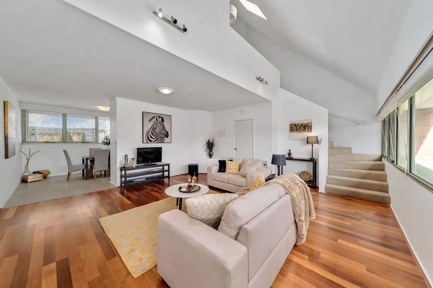 With timber and carpet flooring, gas and electric wall heaters, laundry clothes dryer, fresh window treatments, Bosch dishwasher, an electric hot water system, second toilet room downstairs, loft area that can be a third bedroom, and all newly painted inside, this lovely large Kingston apartment with high sloping ceiling design, will be a delight.